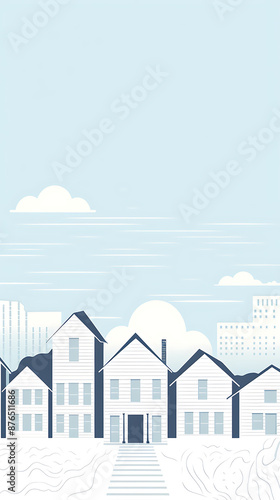 Naklejka premium Peaceful neighborhood, simple houses, calm blue sky.