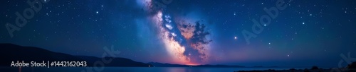 © Anawin, Naklejka premium Peaceful night sky with sparkling stars and milky way galaxy, beautiful, tranquil, starry