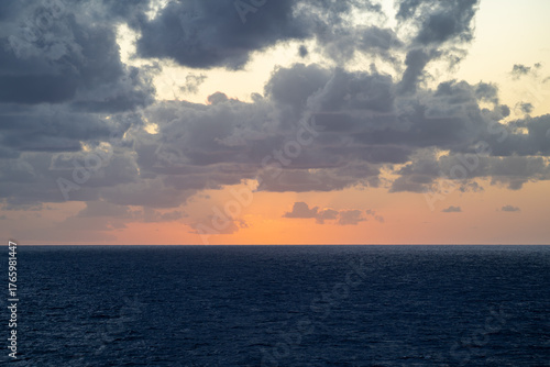 © Piotr, Naklejka premium Peaceful ocean horizon at sunset with colorful sky and clouds