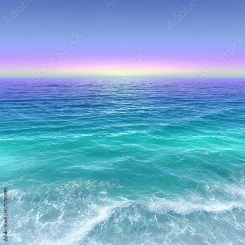 Obraz premium Peaceful Ocean Sunrise Turquoise and Blue Waters Under a Purple Sky