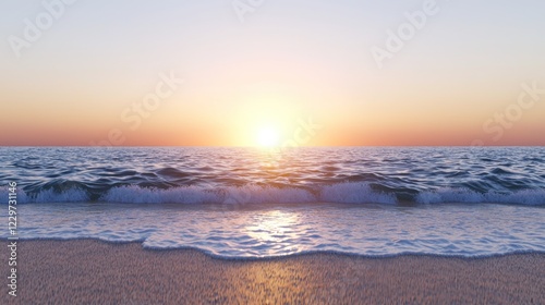 Fototapeta premium Peaceful Ocean Sunset: Waves on Sandy Beach