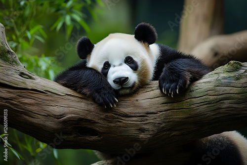 © Andsx, Obraz premium Peaceful Panda Resting on a Tree Branch