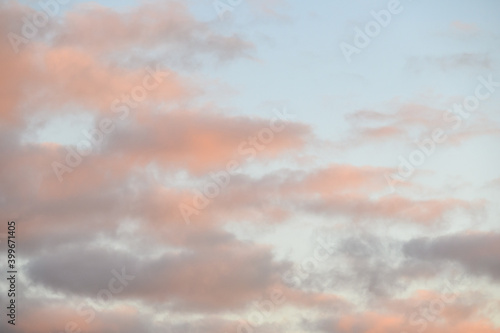 Obraz premium Peaceful pastel light in an evening sky, blue sky and fluffy clouds as a...