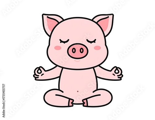 © gilang, Naklejka premium Peaceful Pink Pig Meditating in Zen Pose.
