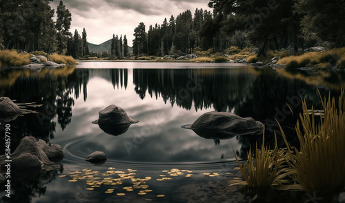 Naklejka premium Peaceful Pond with Reflections of Trees