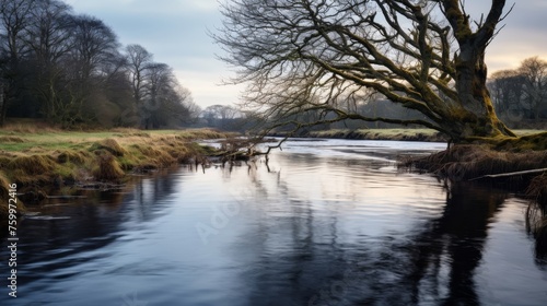 Obraz premium Peaceful river and clouds in soft light