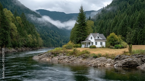 © Tunjung, Fototapeta premium Peaceful river house scenery