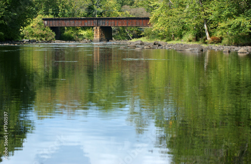 © Bert Folsom, Fototapeta premium Peaceful river with railroad bridge