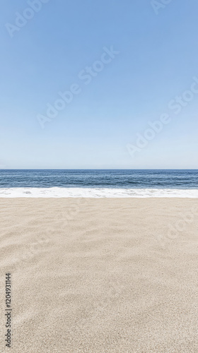 Fototapeta premium Peaceful sandy beach under a clear blue sky near the calm ocean waves