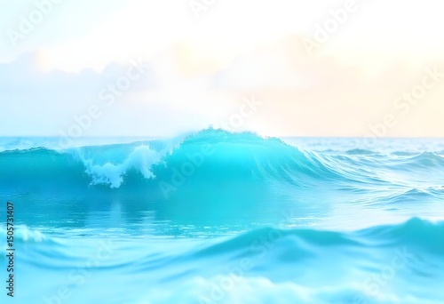 © Bandhan, Naklejka premium Peaceful sea wave rolling under warm morning light with soft gradient sky high resolution photo