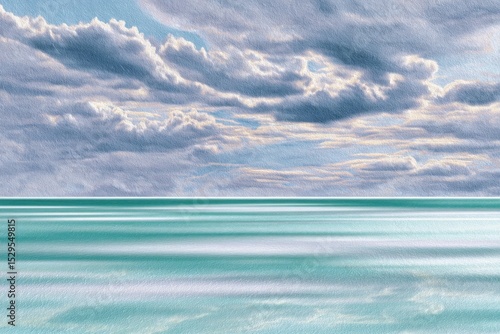 Obraz premium Peaceful Seascape Dream: Teal Ocean and Soft Clouds
