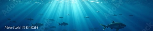 Fototapeta premium Peaceful seascape with serene blue waters and shoals of shimmering fish...