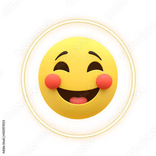 Fototapeta premium Peaceful Smiling Face Emoji with Animated Glowing Effect A Serene and...