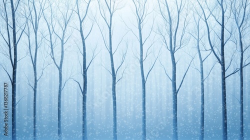 © Alex, Fototapeta premium Peaceful Snowfall in a Quiet Forest with Snowflakes Gently Landing on Branches