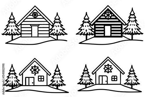 Fototapeta premium Peaceful Snowy Cottage Line Art