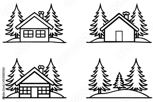 Fototapeta premium Peaceful Snowy Cottage Line Art