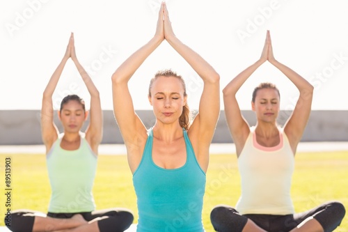 © WavebreakmediaMicro, Naklejka premium Peaceful sporty women doing lotus pose