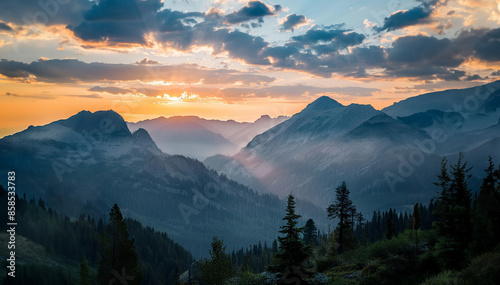 Obraz premium peaceful sunrise over the mountains