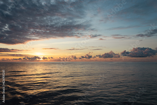 Fototapeta premium Peaceful sunset in the middle of the ocean on board of a cruise ship.