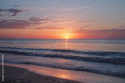 Fototapeta premium Peaceful Sunset on a Hidden Beach with Gentle Waves and Calm Ocean