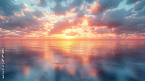 Fototapeta premium Peaceful Sunset over Calm Ocean - Realistic Image