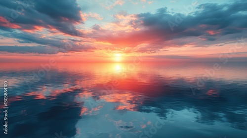 Fototapeta premium Peaceful sunset over calm sea reflecting fiery sky. Possible use nature,...