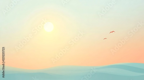 Obraz premium Peaceful Sunset Over Rolling Ocean Waves With Birds