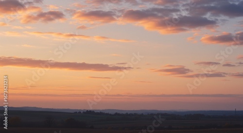 Naklejka premium Peaceful Sunset Over Rural Landscape