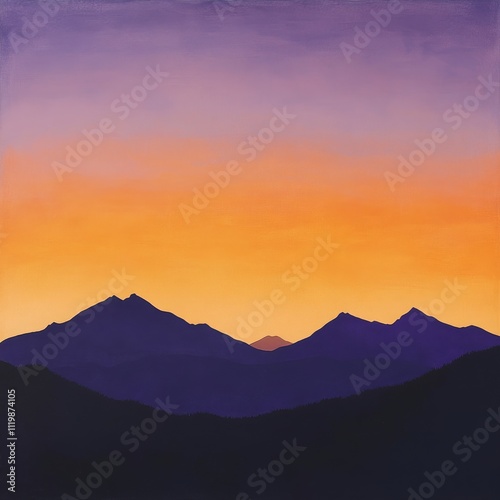 © Phunnada, Obraz premium Peaceful Twilight Sky with Vibrant Orange and Purple Hues