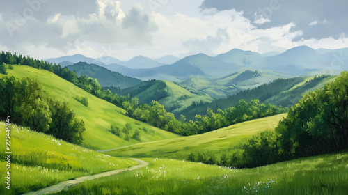 Fototapeta premium Peaceful Valley Landscape with Calming Green Hills