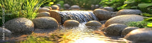 Fototapeta premium Peaceful Waterfall Over Rocks
