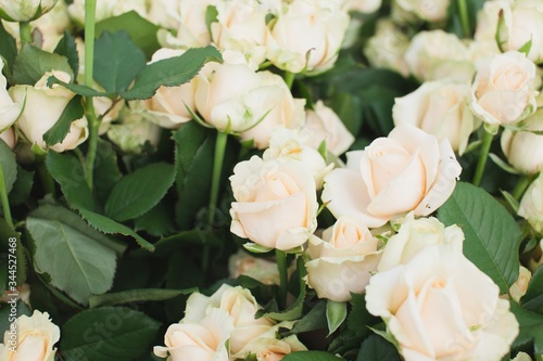 © Sergei, Fototapeta premium Peach Avalanche Rose Bush Background