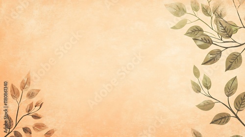 © lisa, Obraz premium Peach Background with Corner Leaf Branches