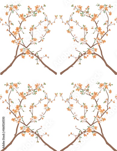 © Dinil, Fototapeta premium Peach Blossom Branch Repeat Pattern Design