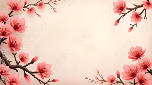 © ivanda, Fototapeta premium Peach Blossom Flowers Frame Background. Concept of spring, nature, and beauty.