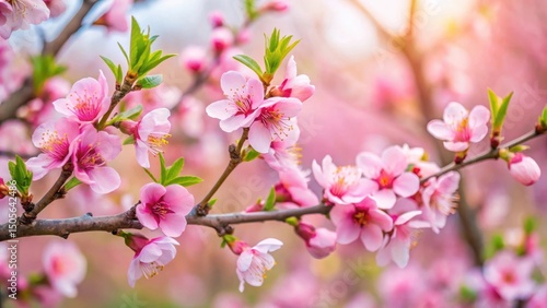 © Songkran, Fototapeta premium Peach blossoms in spring garden, soft pink petals on branch