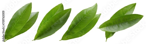 © Maks Peoplenko, Obraz premium Peach leaf isolated on white background