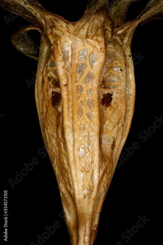 © Valery Prokhozhy, Obraz premium Peach-Leaved Bellflower (Campanula persicifolia). Fruit Detail Closeup