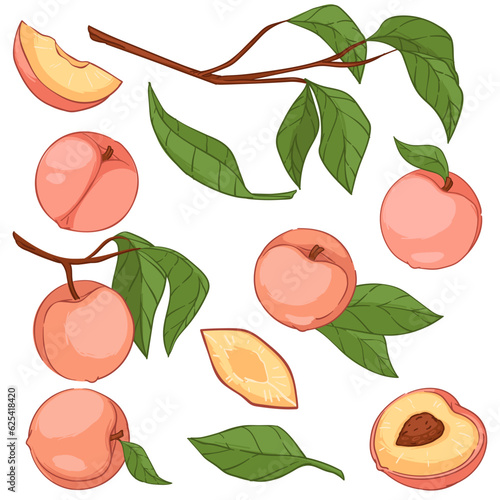 Obraz premium Peaches or big apricots on tree branches vector