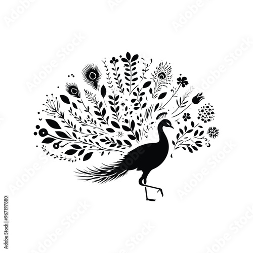 Obraz premium Peacock bird made by simple botanical drawing, black and white animal...