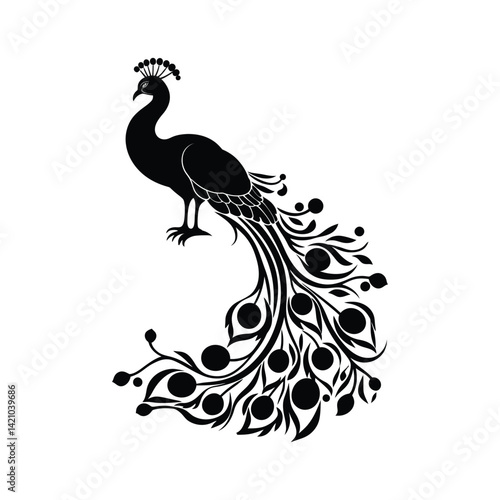 © Shahanur, Obraz premium Peacock black color on isolated white background