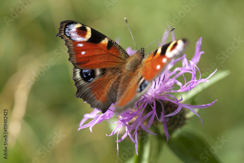 © helen, Obraz premium Peacock butterfly on flower. Macro.