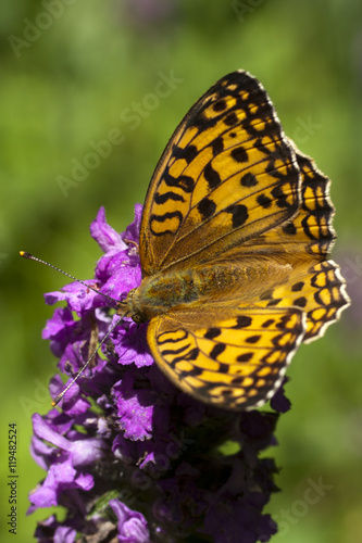 © helen, Obraz premium Peacock butterfly on flower. Macro.