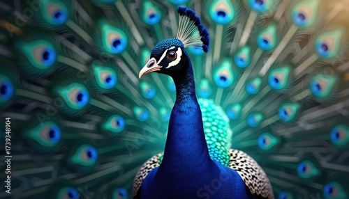 © Maju, Fototapeta premium Peacock Digital Artwork Featuring Glowing Feathers In Artistic Style