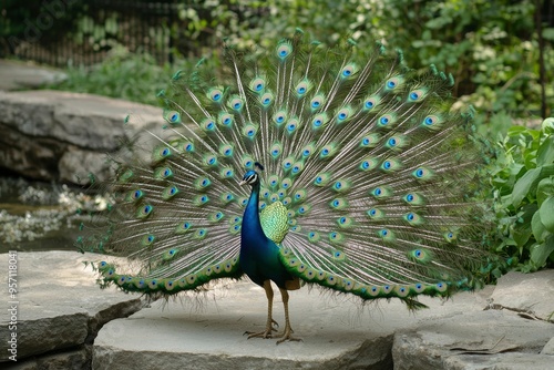 © talkative.studio, Obraz premium Peacock Displaying its Elaborate Tail Feathers