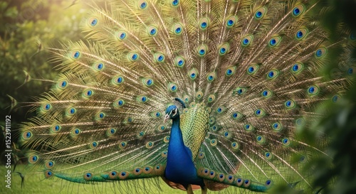Obraz premium Peacock displaying its magnificent tail feathers.