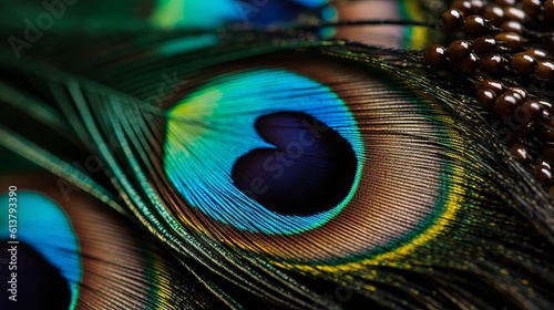© Ace Studio, Naklejka premium peacock feather close up by generative ai
