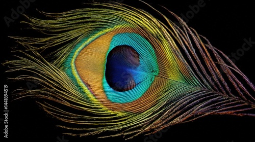 © Darya, Obraz premium Peacock feather close-up with vibrant eye pattern
