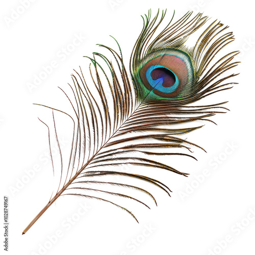 Fototapeta premium Peacock feather isolated on transparent background.