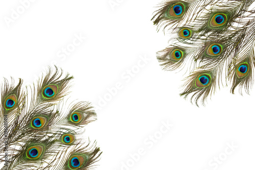 © Siwakorn1933, Obraz premium Peacock feather isolated on white background